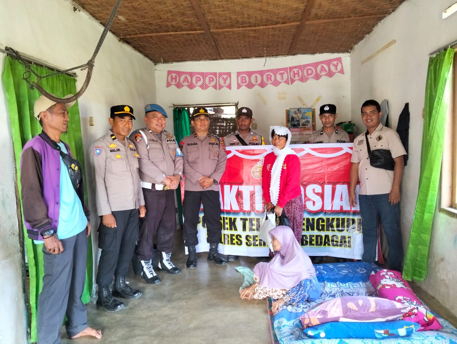 Kanit Binmas Polsek Teluk mengkudu IPDA MASLANI mengatakan, “Saya mewakili Kapolsek Teluk Mengkudu AKP Desman Manalu, SH Khususnya Polres Sergai memberikan Bantuan ini yang bertujuan serta diharapkan dapat membantu meringankan kebutuhan sehari-hari terhadap kaum duafa serta warga yang sudah sakit hingga menahun yang kebutuhan sehari-harinya sulit terpenuhi,” ucapnya.